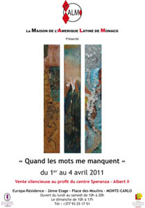 Dans le cadre de l’opération ART et ALZHEIMER 2011, l’AMPA et l’accueil de jour du Centre Speranza Albert II de Monaco ont organisé une exposition intitulée « Quand les mots me manquent », à l’occasion du Printemps des Arts de Monte Carlo.